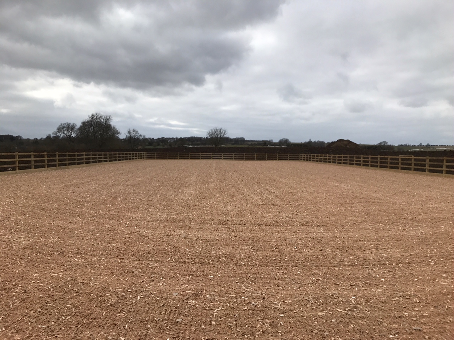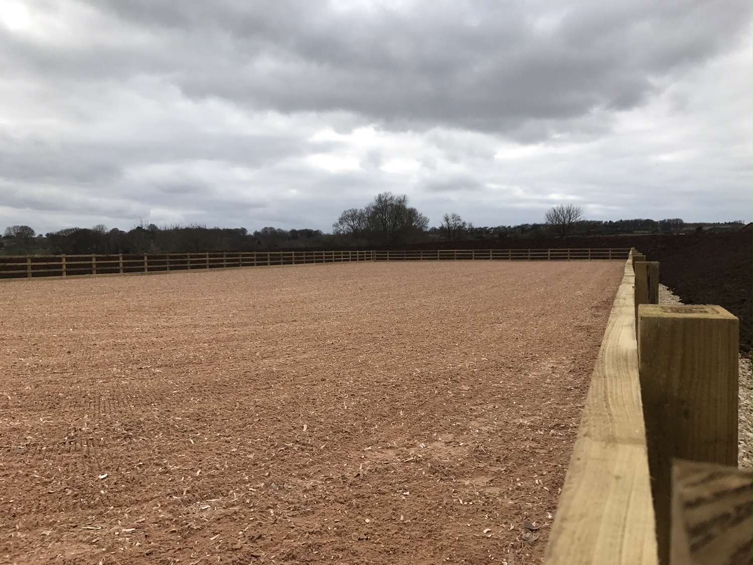 This is a complete turnkey new build arena and surface, built on a family farm near Cheltenham, Gloucestershire. We had to be competitive with our pricing and also cope with some exceptionally inclement weather – the site is on top of the Cotswolds, rather exposed and during the build had everything from 50mm downpours, ice and two periods of snow!