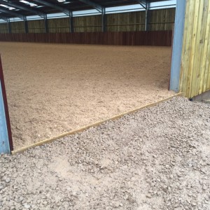 This surface, supplied and installed into a pre-built arena – was delivered and installed in one week, having been mixed the previous week. This included installation of a membrane on top of a pre-prepared base, plus supply and installation of surface for the 50ft lunge pen.